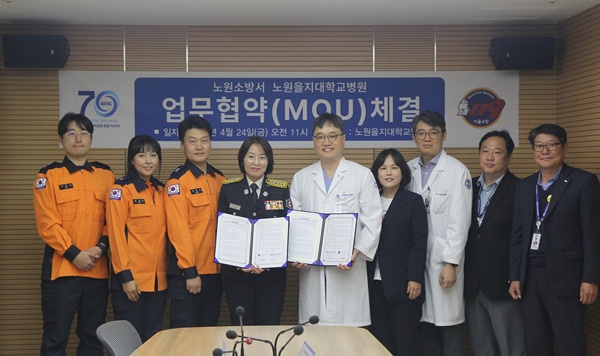 노원을지대학교병원(병원장 김재훈)이 4월 24일 오전 11시 모자보건센터 3층 회의실에서 노원소방서와 업무협약(MOU)을 체결했다.
